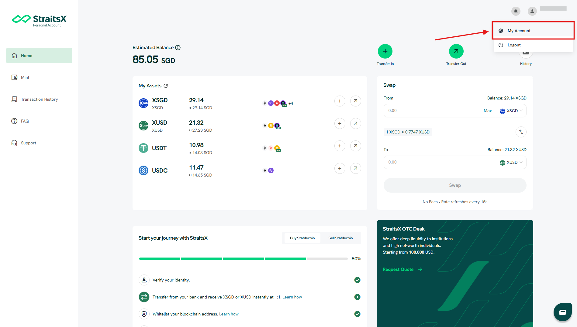 - If you already have supported tokens in your blockchain address, you can directly deposit any amount of supported stablecoins from your blockchain address to your StraitsX account. Once the deposit is confirmed, your address will be whitelisted.