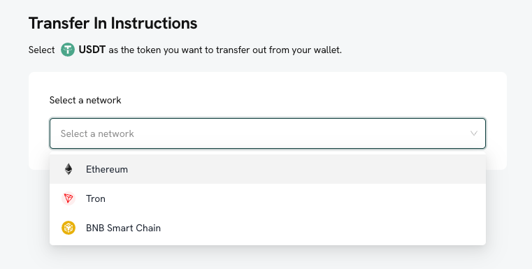 - Ensure that you are sending from the correct network selected during the Transfer In process.