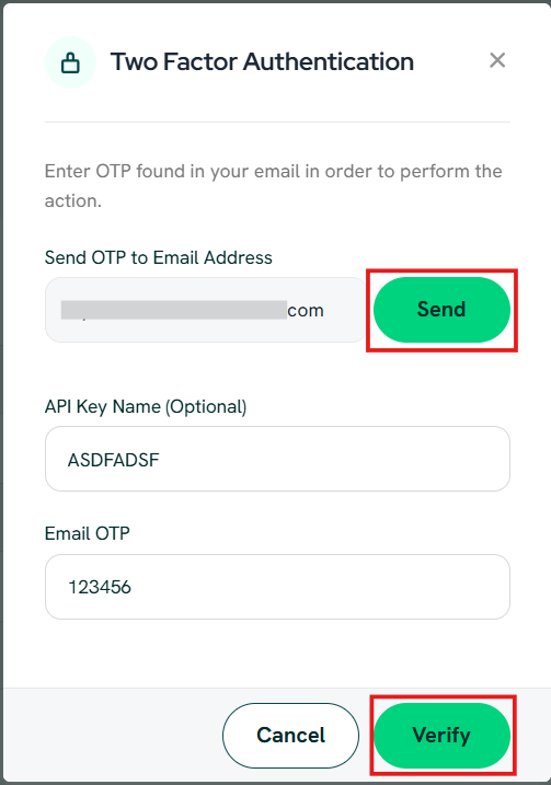 - Click Send to receive a One-Time Password (OTP) via email