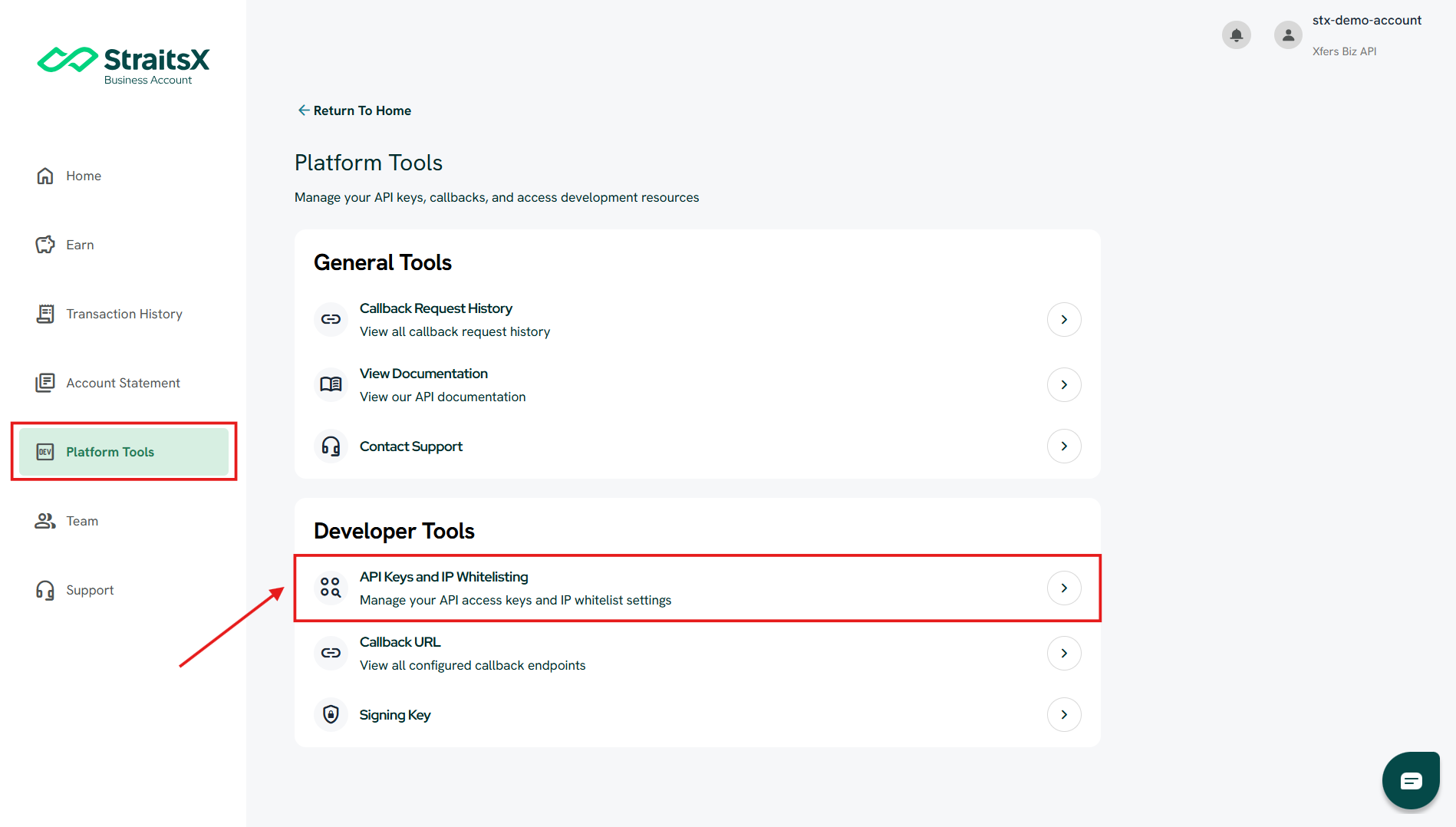 Platform Tools → Developer Tools → API Keys and IP Whitelisting